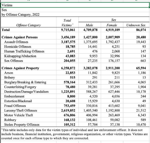 Females Are Victimized More By Violent Crime Based On FBI Total Numbers