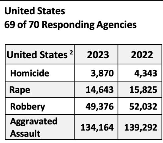 There seems to be little doubt that homicides have decreased considerably in the US. Overall violence (based on crimes reported to law enforcement) in the US has either decreased or is essentially flat in 2023, depending on the source used, again, based on big city crime dashboards.