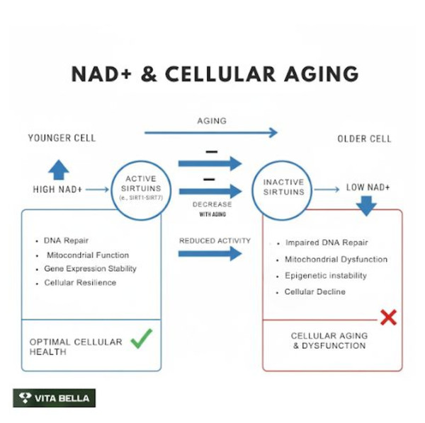 Don’t let declining NAD+ levels slow you down. At Vita Bella, we offer clinically supervised, research-backed NAD+ injections designed to restore energy, support cellular repair, and promote graceful aging. Discover the difference science can make, start your journey to vitality and longevity today!