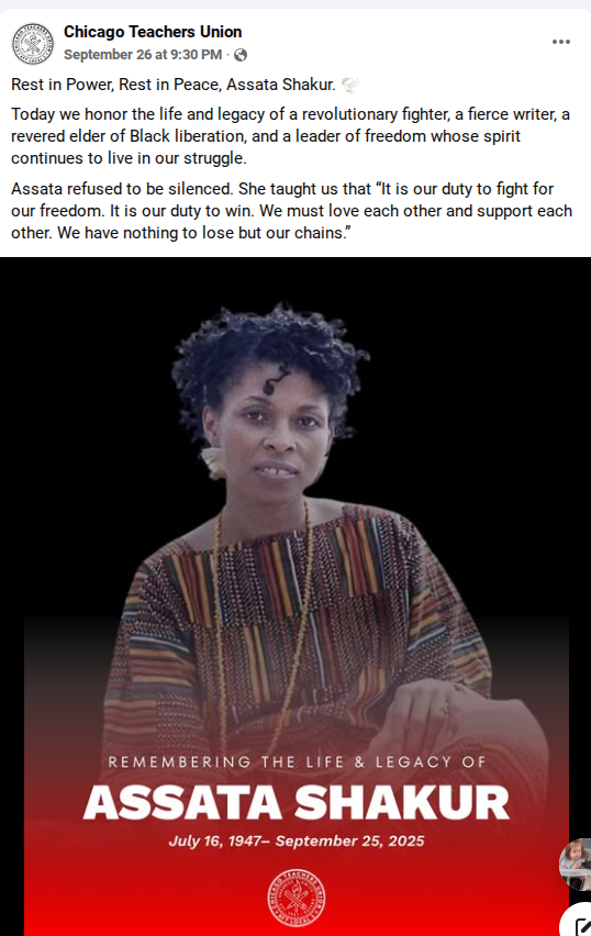 “Rest in Power, Rest in Peace, Assata Shakur.