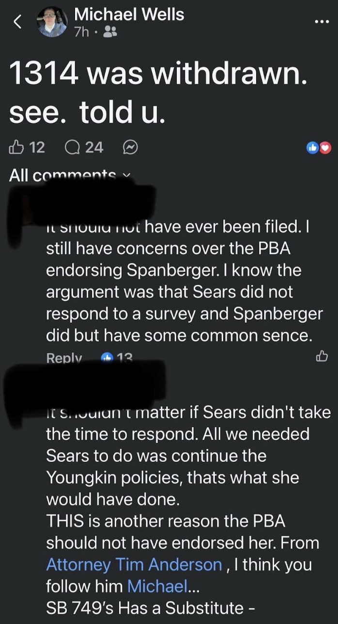 VAPBA Vice President “told you so” Facebook post gloating that HB 1314 was tabled.