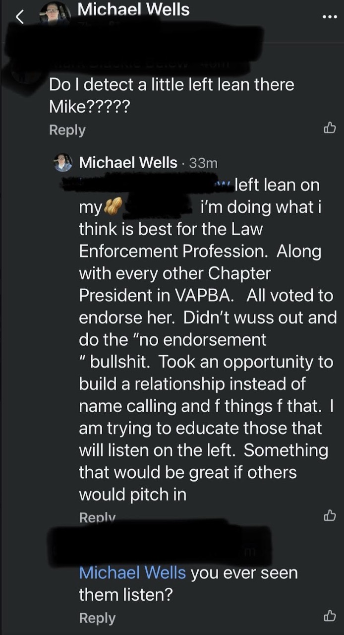 The VAPBA endorsed a politician whom its own members overwhelmingly opposed. When officers objected, leadership dismissed the backlash, lied about what happened, and then mocked critics publicly when they thought no one was watching.